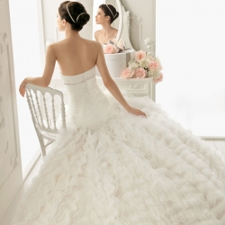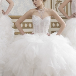 Характерной чертой этой модели является обтягивающий корсетом лиф и очень объемная юбка, напоминающая шар. Наряд подойдет для свадьбы, которая будет проводиться в больших, просторных помещениях.
